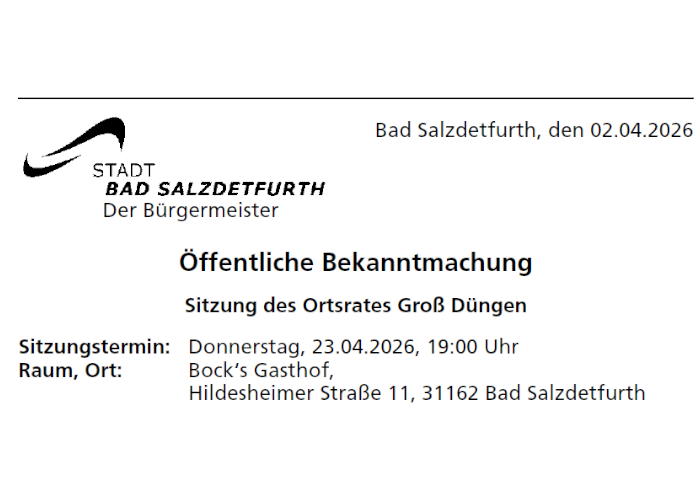 Den nunmehr neunten Dorfflohmarkt organisiert der Förderverein Groß Düngen für Sonntag, 10. Mai. Er findet in der Zeit von 11 bis 16 Uhr auf der Joseph-Müller-Straße statt. (weitere Infos1, Infos2)
